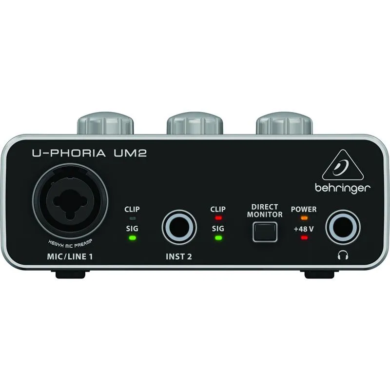 UM 2 от компании BEHRINGER – это аудио-интерфейс 2х2 серии U-Phoria. Устройство предназначается для подключения по протоколу USB к персональному компьютеру. Оно оснащено микрофонными предусилителями XENYX с 48 В фантомного питания.