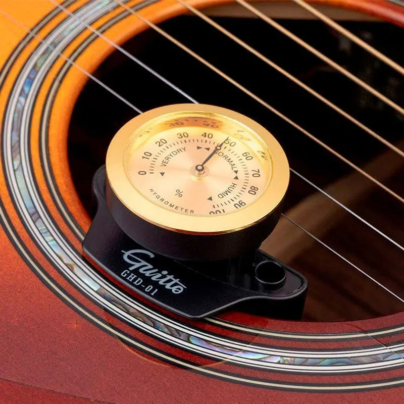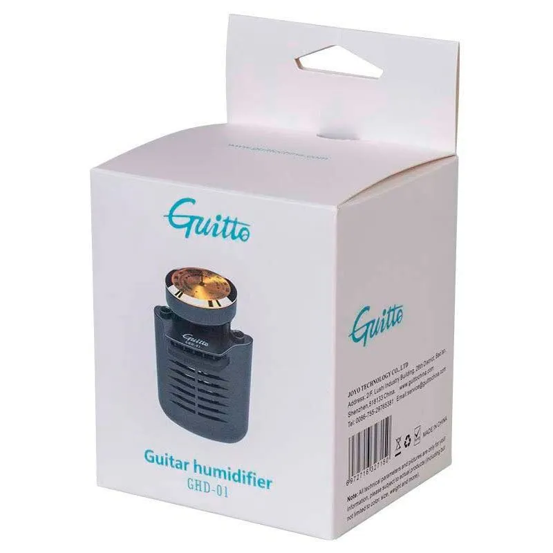 GUITTO GHD-01 - это специально разработанный для гитары увлажнитель со встроенным измерителем влажности продлит срок службы Вашего инструмента и поможет избежать пересыхания и трещин. Большая часть представленных на рынке увлажнителей вставляются между третьей и четвертой струной, тем самым увеличивая натяжение и нагрузку на гриф. GUITTO GHD-01 крепится к резонаторному отверстию гитары не задевая струны, тем самым обеспечивая поддержание оптимальной влажности без вреда для инструмента.