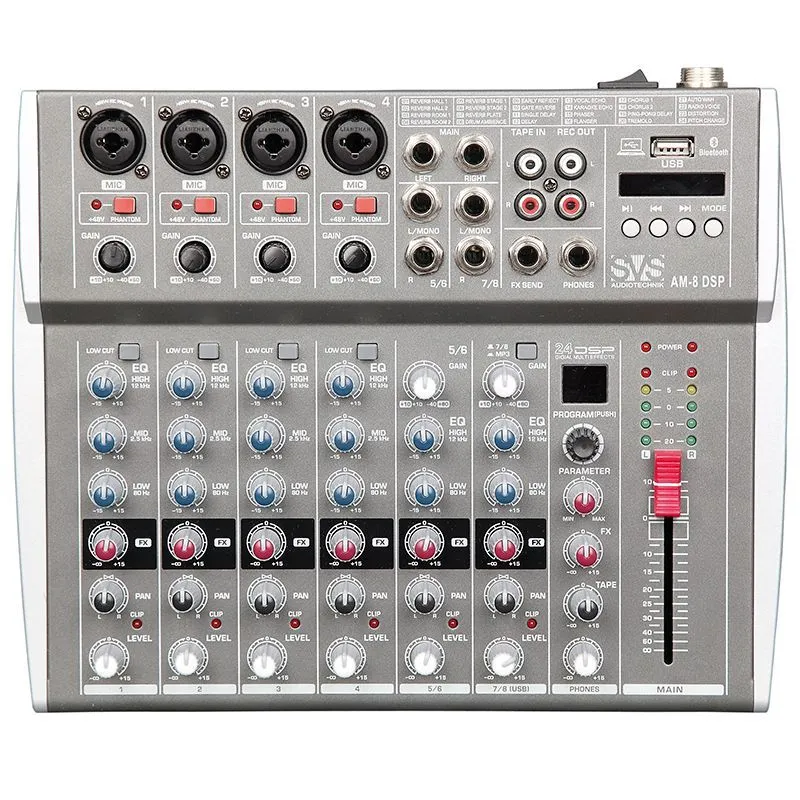 Микшерный пульт аналоговый, 8-канальный, 24 DSP эффекта, USB интерфейс.Современный дизайн - тонкий и лёгкой корпус. Удобный интуитивный интерфейс.